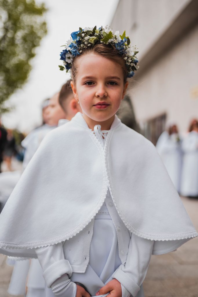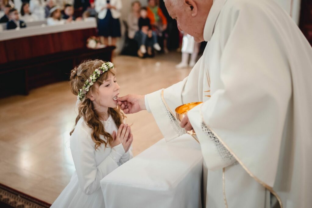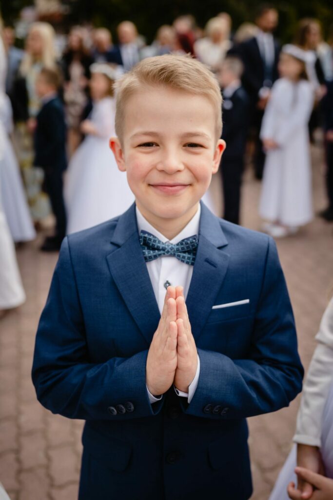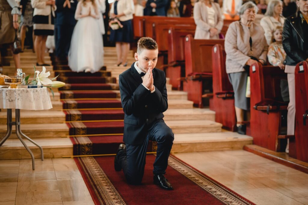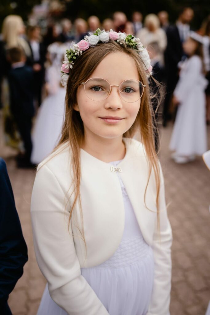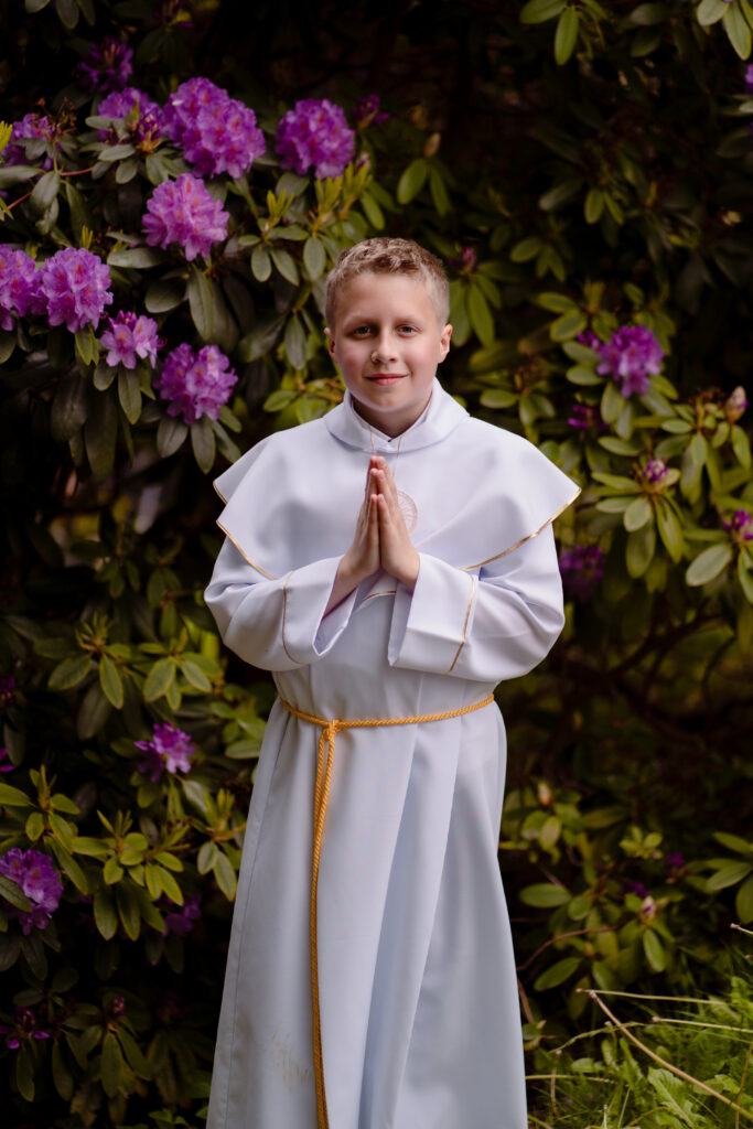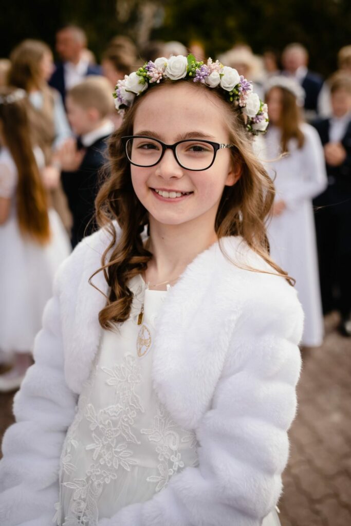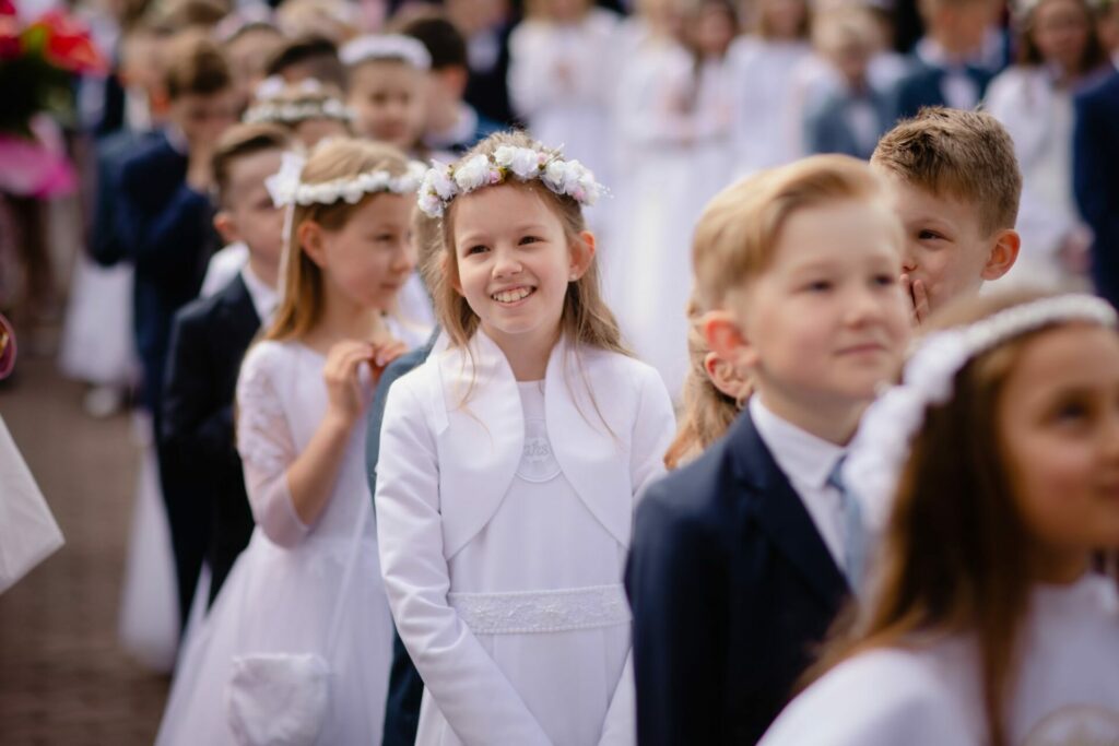 Reportaż fotograficzny w tym ważnym dniu zaczynam od zdjęć dzieci przed kościołem w momencie kiedy się szykują i ustawiają. Wykonuję wtedy portret każdemu dziecku oraz zdjęcia reportażowe całego otoczenia. Uwiecznię Wasze emocje oraz zamieszanie, które będzie temu towarzyszyć. ( naturalne, nie ustawiane zdjęcia najczęściej są najciekawsze). Potem zgodnie z przebiegiem mszy będę uwieczniać wszystko to co się będzie na niej działo. Czytania, niesienie darów, podziękowania i najważniejsze przyjęcie pierwszej komunii świętej przez Wasze dziecko. Po zakończeniu mszy wykonamy zdjęcie grupowe wszystkich dzieci oraz zdjęcia rodzinne (na dworze lub w kościele w zależności od pogody).