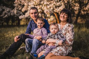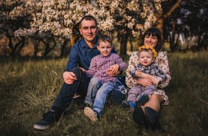 Sesja rodzinna plenerowa w domowym ogródku w Darłowie