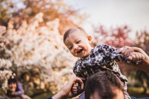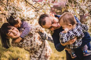Nie każda sesja plenerowa to podróż za miasto. Czasami udaje się znaleźć piękne, niezaśmiecone miejsce na sesję rodzinną w samym centrum miasta. W tym przypadku połączyliśmy zdjęcia na placu zabaw z otaczającymi go rozkwitniętymi krzewami. Połączyliśmy piękno natury wraz z atrakcjami dla dziecka.