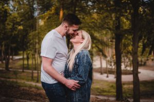 Marzą Wam się takie przepiękne słoneczne zdjecia? Gdybyśmy mieli jakikolwiek wpływ na pogodę to wszystkie sesje robiłabym kiedy jest ciepło i przy przepięknym zachodzie słońca. Natomiast ta sesja wcale nie była robiona w takich cudnych warunkach- tylko tak się wydaje . Zdjęcia robiliśmy między ulewami. Najpierw czekaliśmy w samochodzie z 20 minut aż przestanie padać, a kiedy na chwilę ulewa zamieniła się w lekki deszczyk i przez chmury zaczęło przebijać się słońce ruszyliśmy na sesję. Cały czas towarzyszył nam również zimny wiatr, ale to też nie zniechęciło Magdy i jej rodzinki do pójścia w plener. Szczęście im dopisało bo przestało padać na jakieś 40 minut i dzięki super współpracy ekspresem zdążyliśmy zrobić dużo pięknych kadrów. Oczywiście całą sesję nie było tak pięknie bo w nasza stronę nadciągały ciemne chmury i szybko słońce zaszło co możecie zobaczyć w galerii.