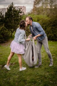 Teraz po zrobieniu kilkunastu sesji z hamakiem mogę tylko potwierdzić, że TAK, TO był strzał w 10 ! Pomimo, że każdy widząc jak rozkładam hamak myślał, że chyba zwariowałam, że położą się w środku to później każdy był zachwycony. Zarówno dzieci jak i dorośli uwielbiają się bujać. Automatycznie pojawia się uśmiech na twarzy, a wszyscy w tej sytuacji są zmuszeni trochę się do siebie poprzytulać i dzięki temu wychodzą przepiękne kadry. Hamak oczywiście jest tylko dodatkiem do sesji, więc na sesjach powstaje również mnóstwo różnych kadrów bez niego.