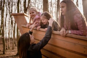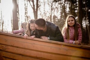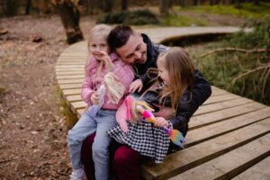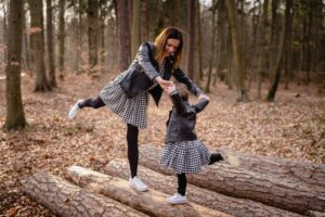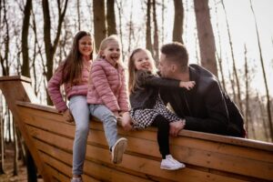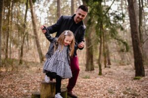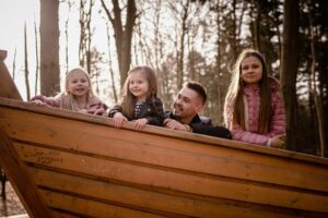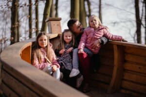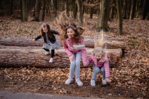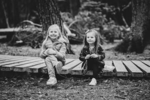Te zdjęcia zrobiliśmy już dawno, wczesną wiosną i jak to w przypadku większości nadmorskich sesji okropnie wiało na plaży. Stąd więcej zdjęć mamy z lasu niż z nad samej wody. Ale ja bardzo lubię takie klimaty, uwielbiam z dziećmi biegać po lesie, bawić się w berka i chowanego. Wykorzystywać powalone drzewa do skakania czy jak w tym przypadku jeszcze drewniane atrakcje do zabawy rodzinnej. Dzięki temu że byliśmy w tym miejscu poza sezonem letnim to nie było tłumów turystów. A jeśli chcielibyście mieć sesję z kuzynostwem podczas wspólnej zabawy tak jak dziewczynki z powyższych zdjęć to serdecznie zapraszam.