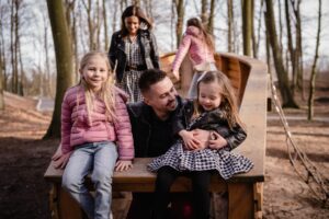 Rodzinna sesja plenerowa na placu zabaw w Koszalinie