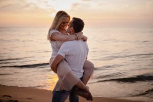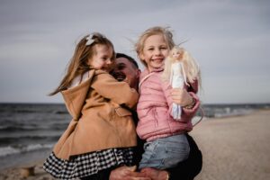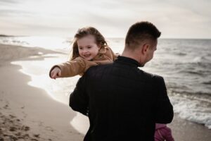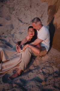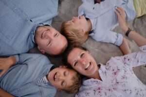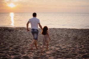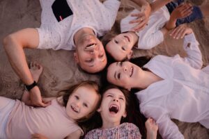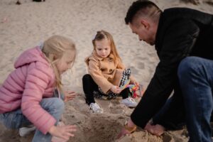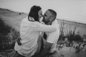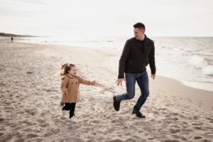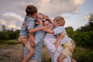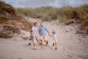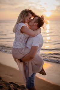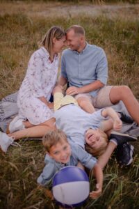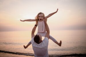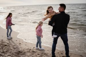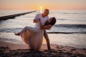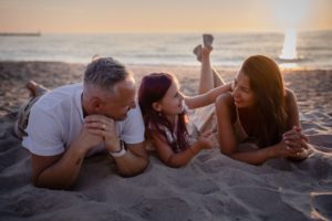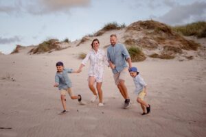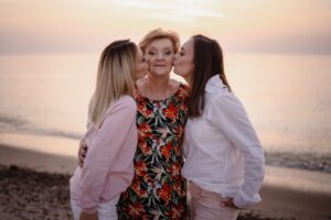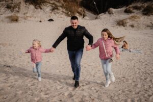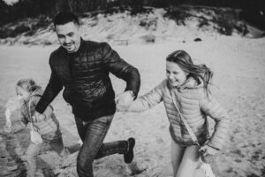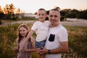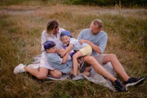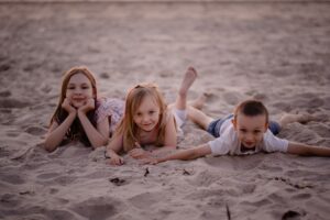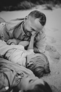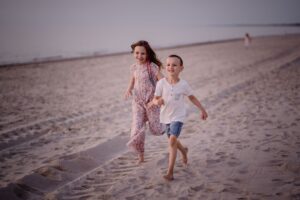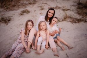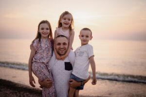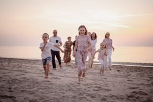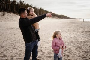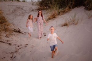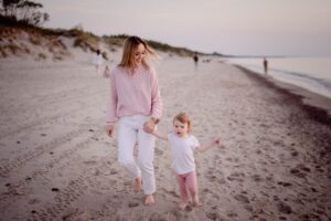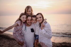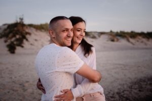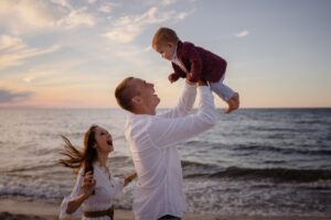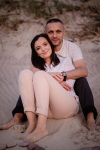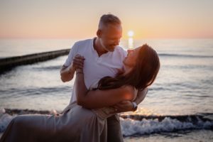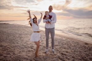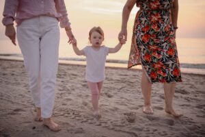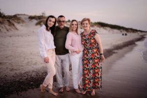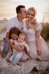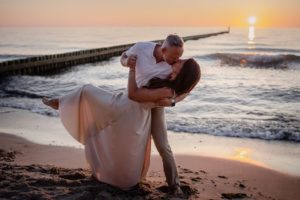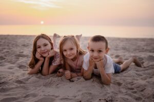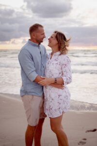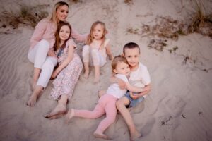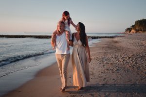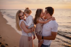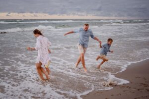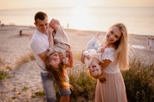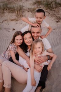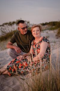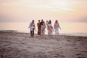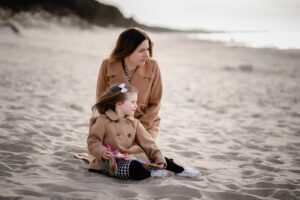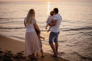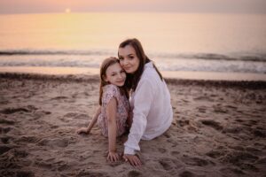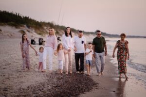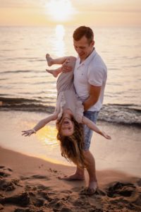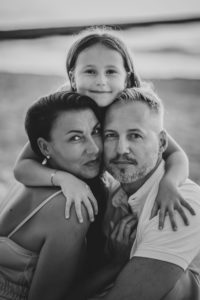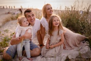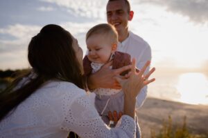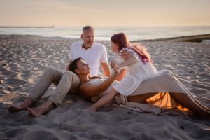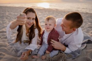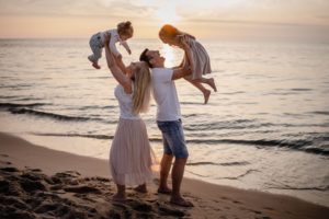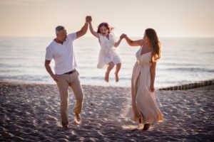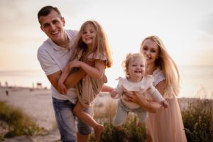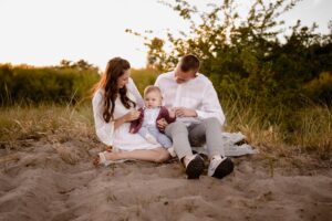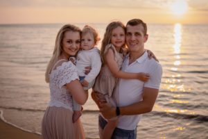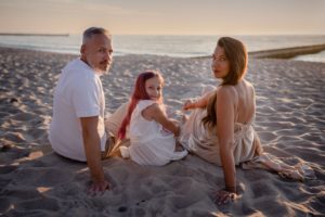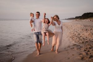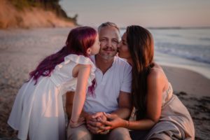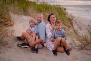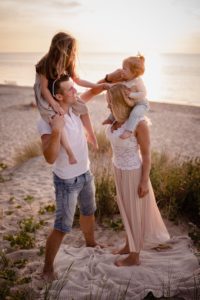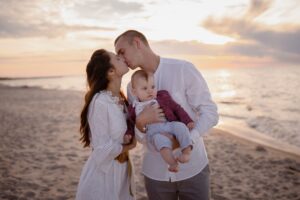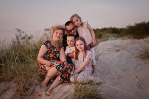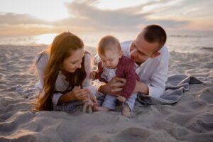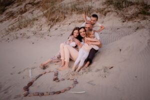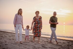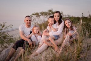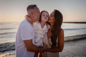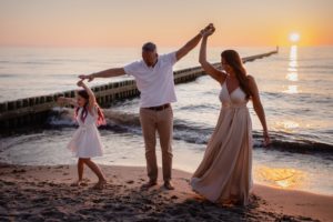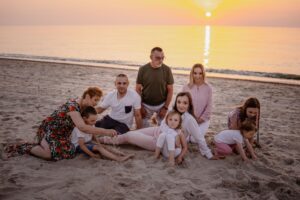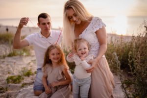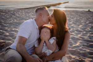 Plenerowa sesja rodzinna o zachodzie słońca nad morzem