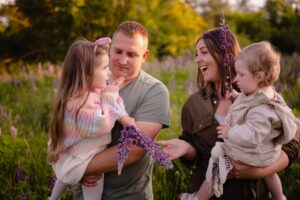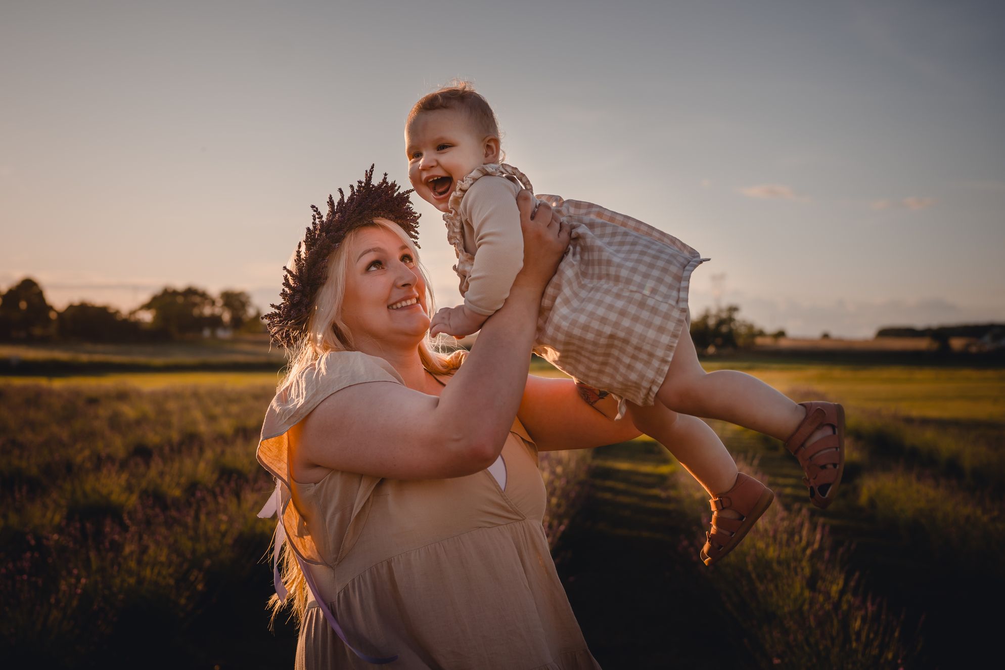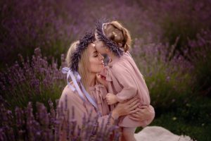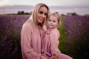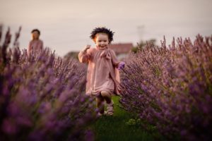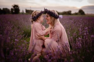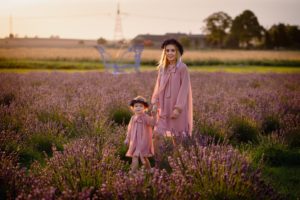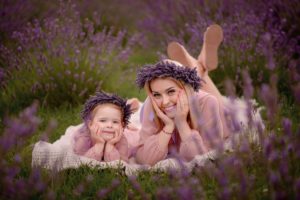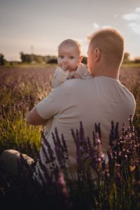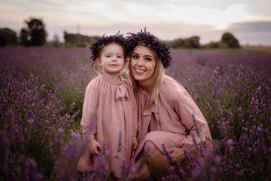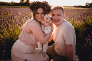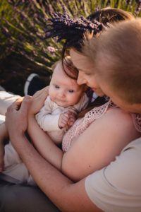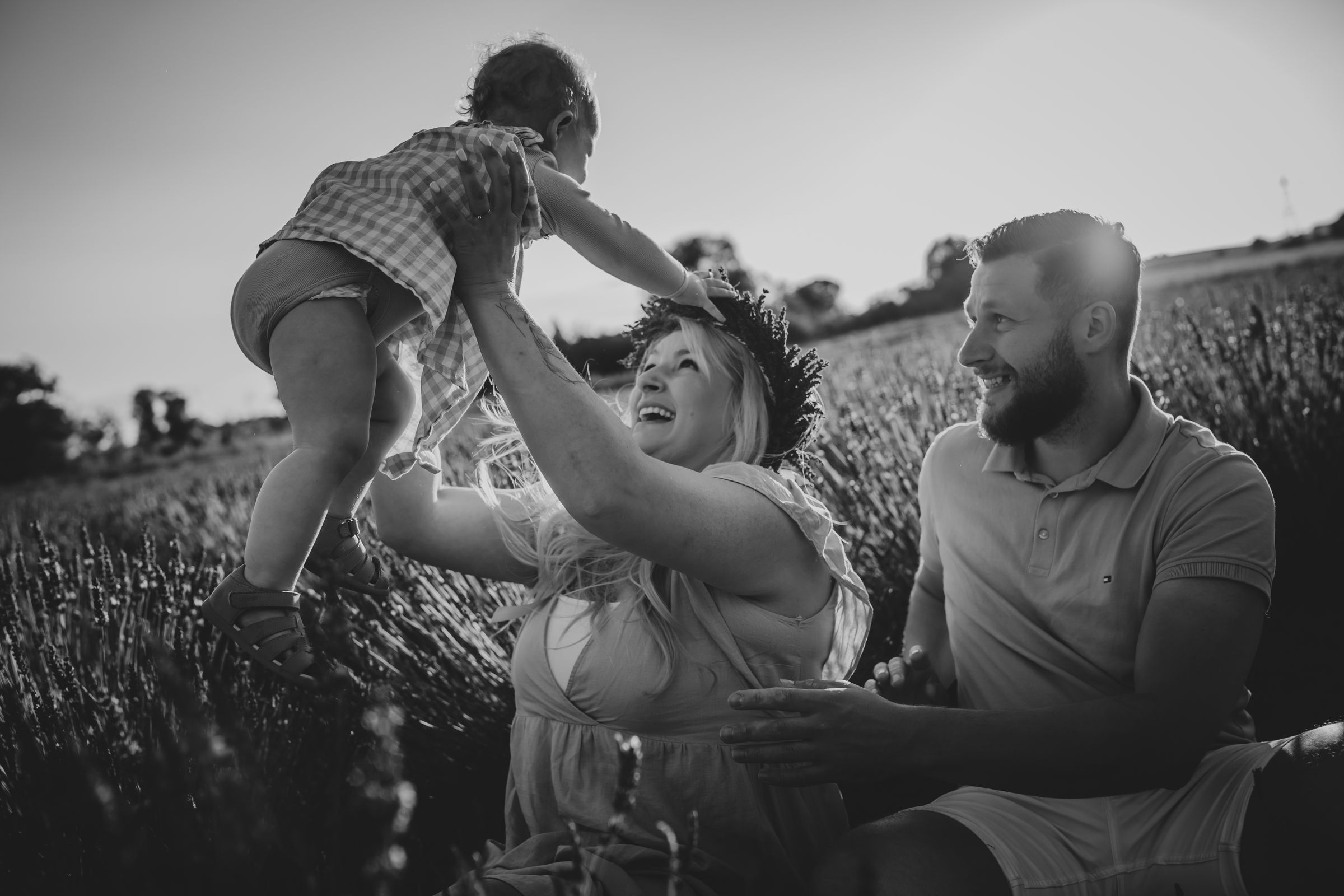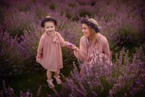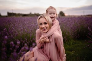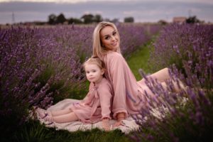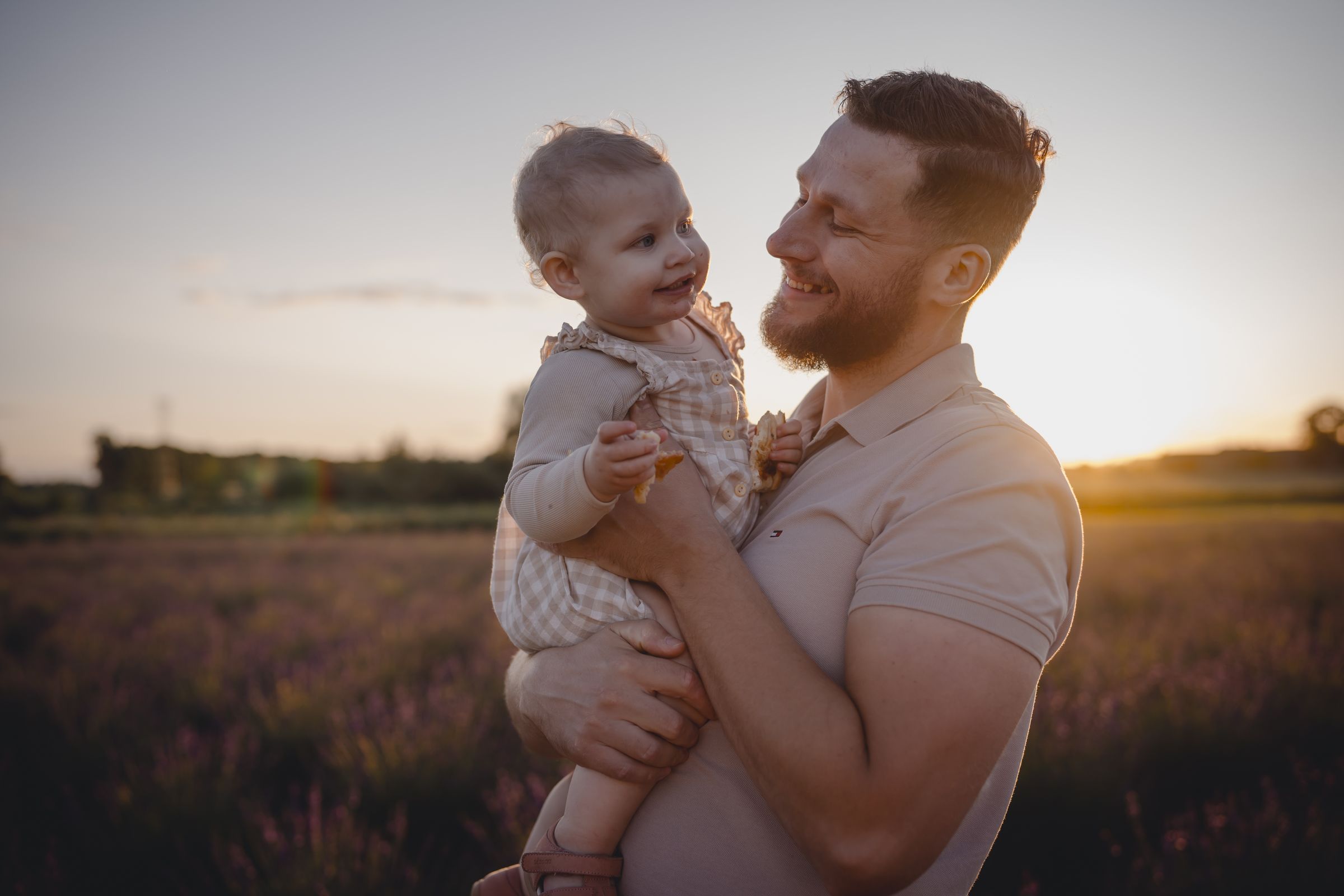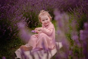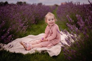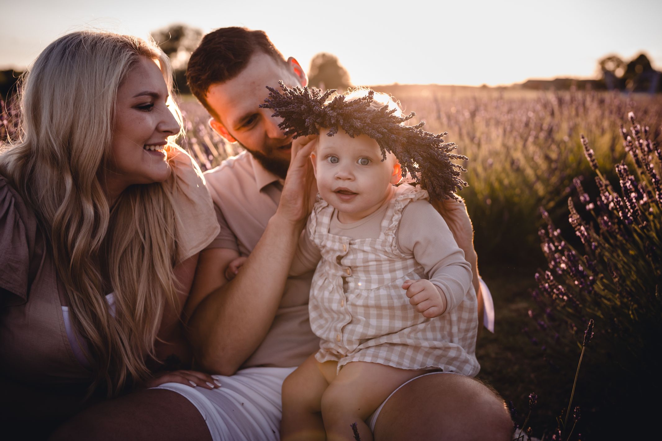 Plenerowa sesja rodzinna w lawendzie o zachodzie słońca
