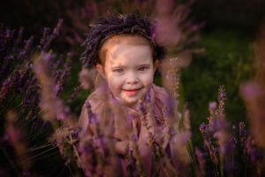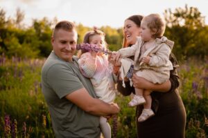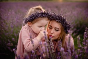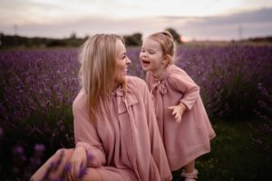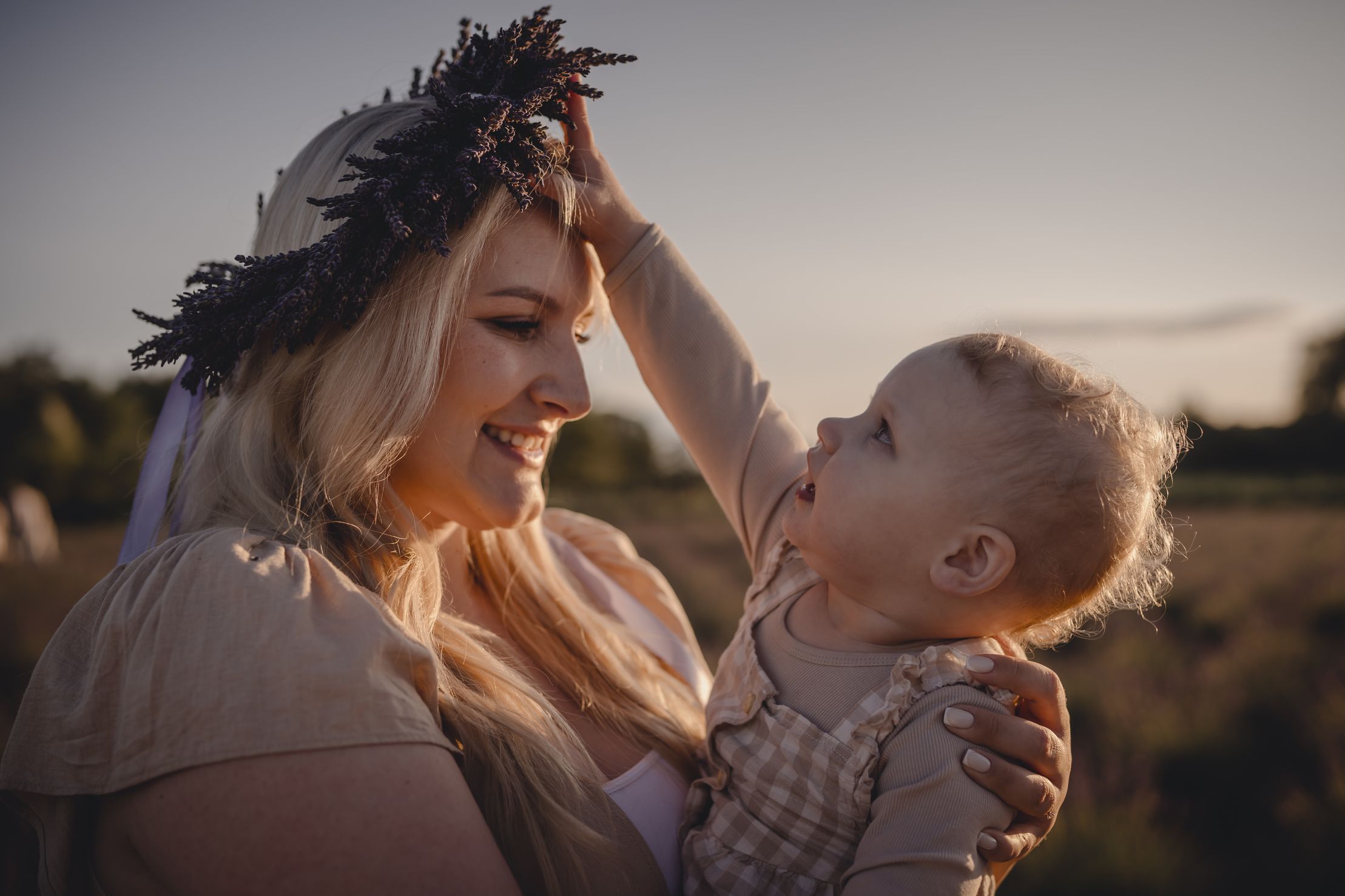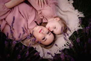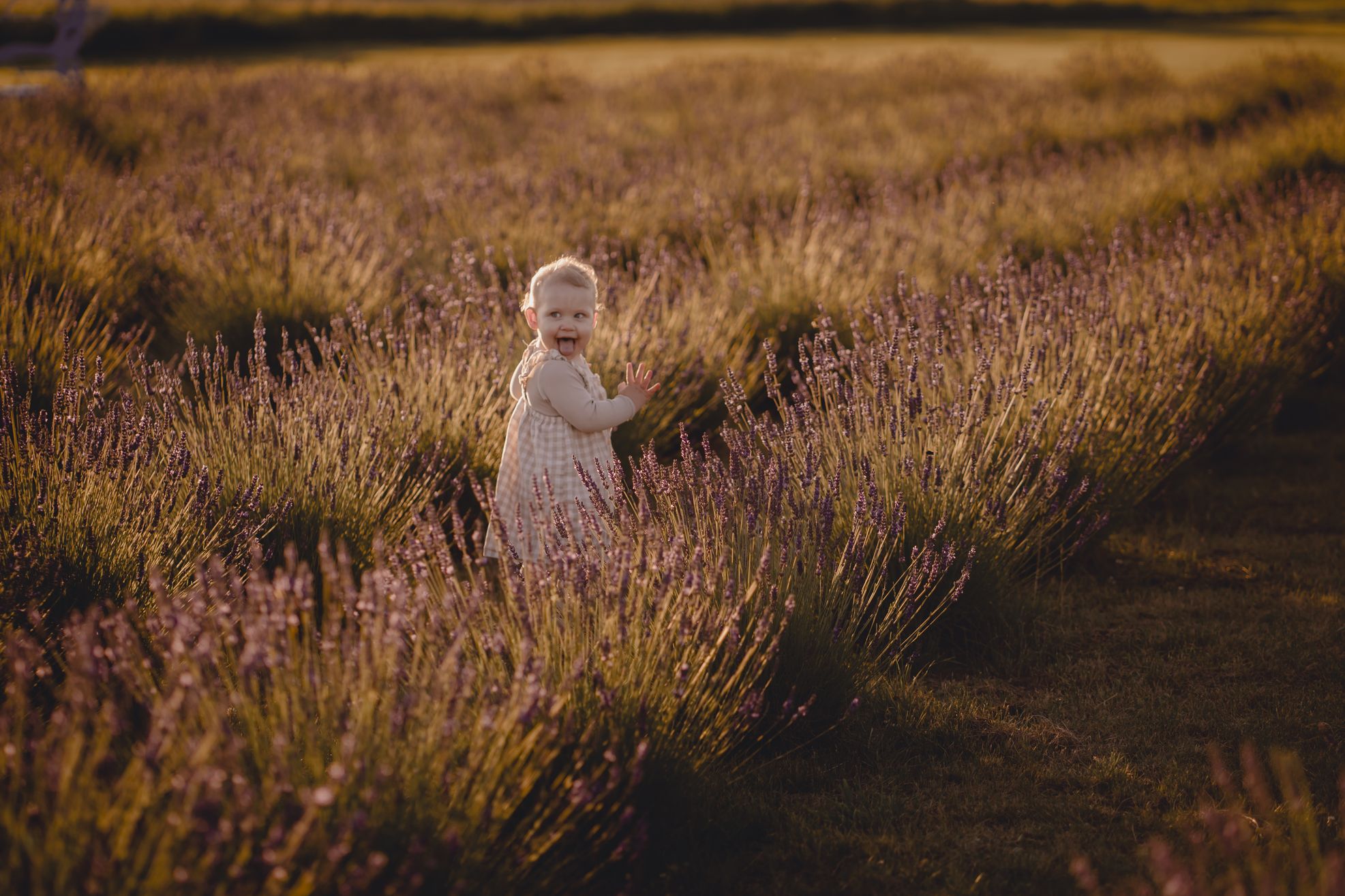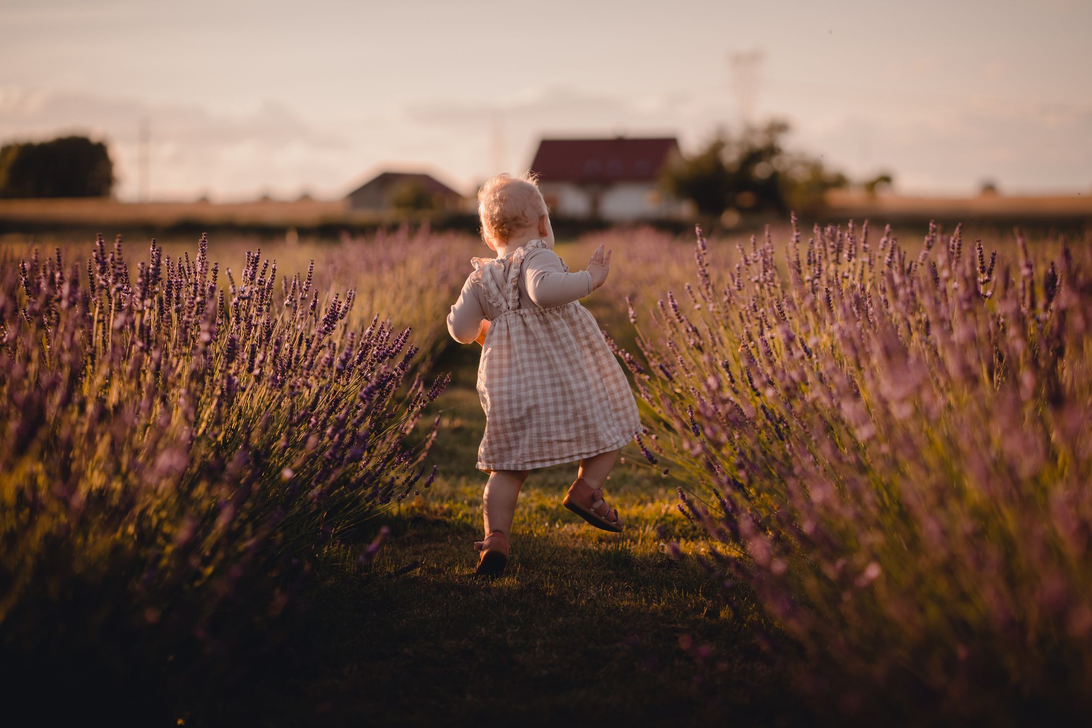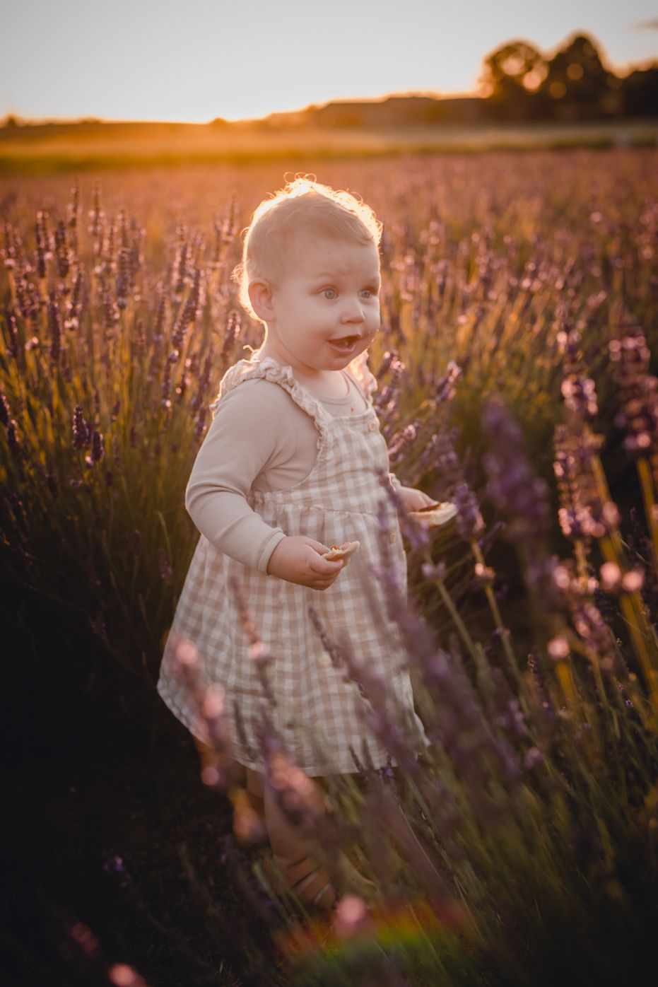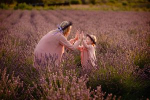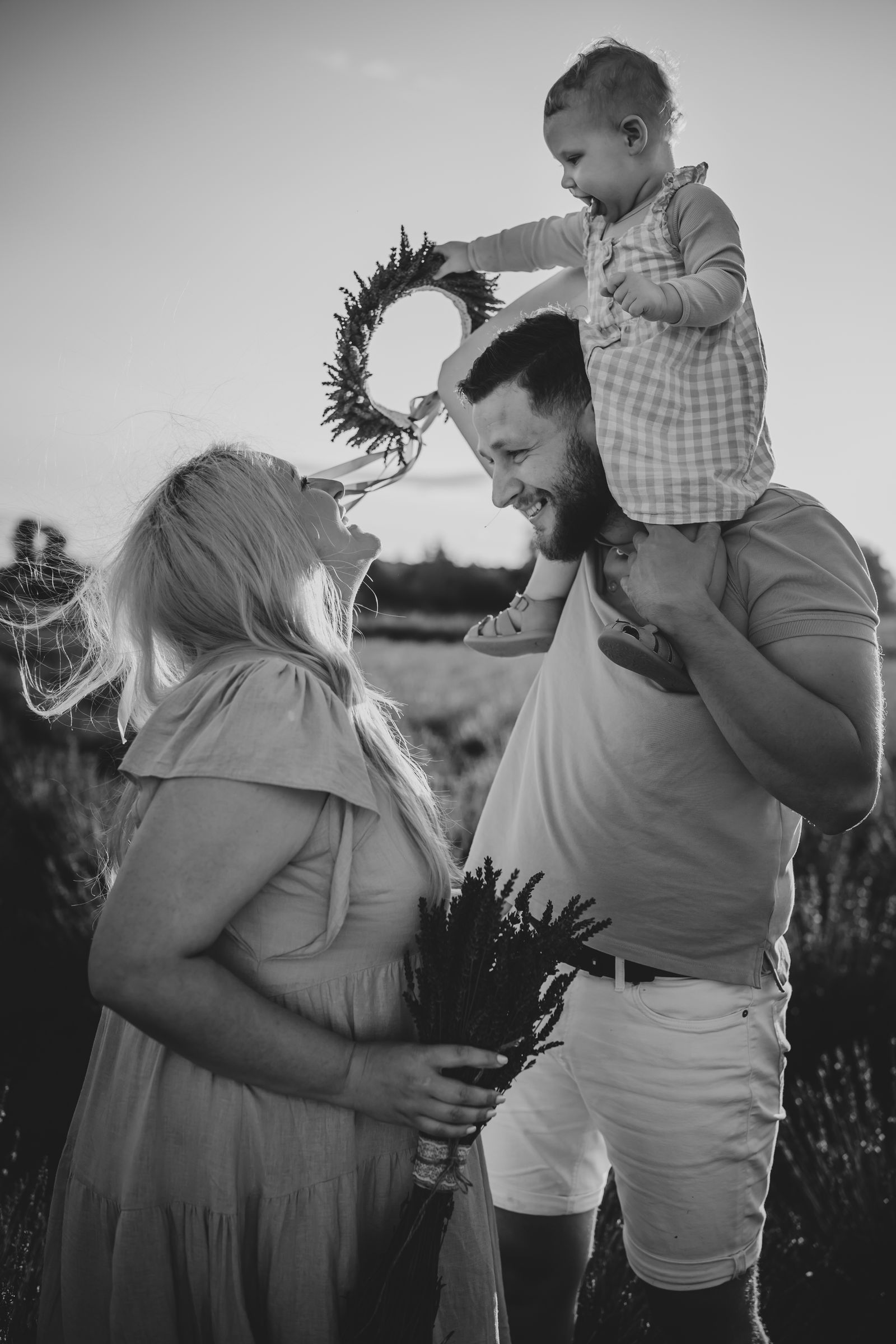 Plenerowa sesja rodzinna w lawendzie o zachodzie słońca