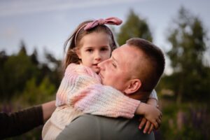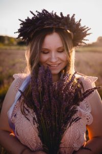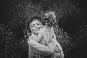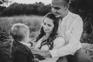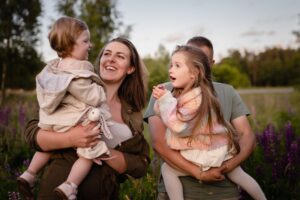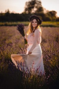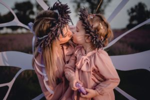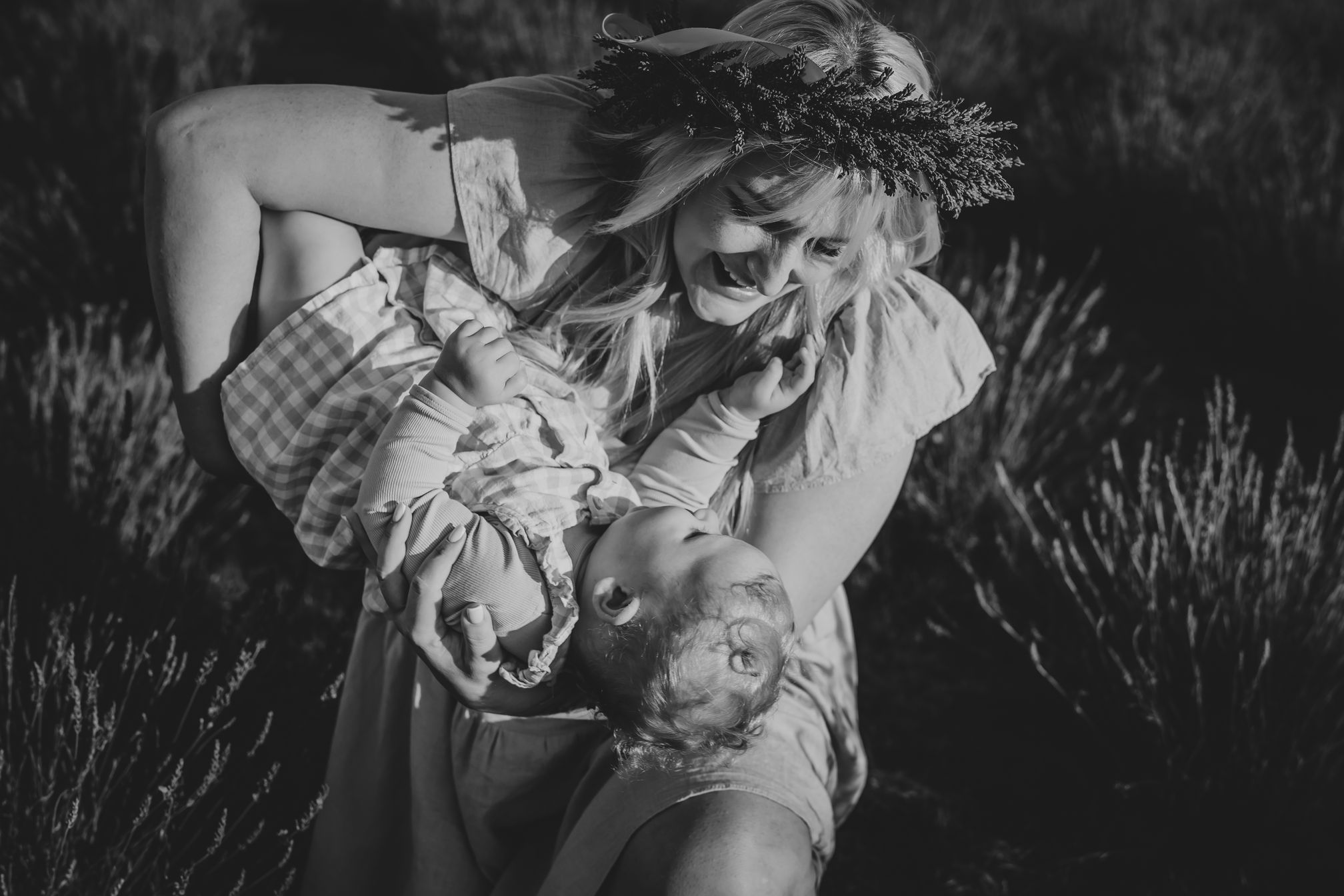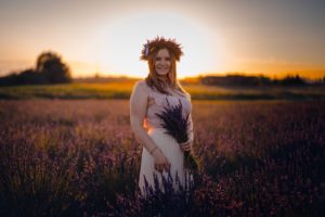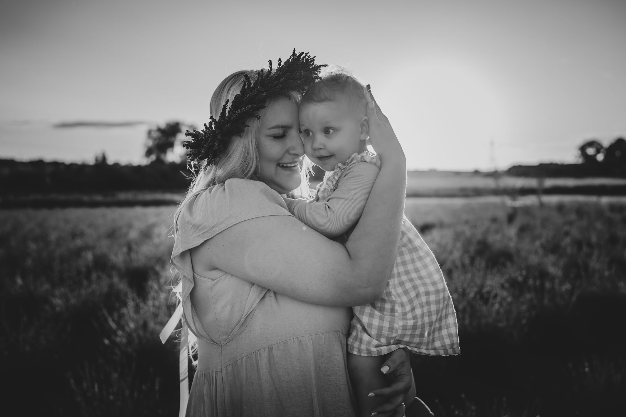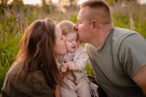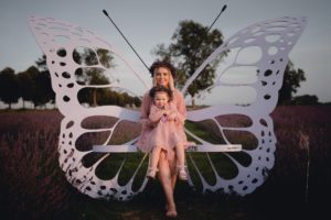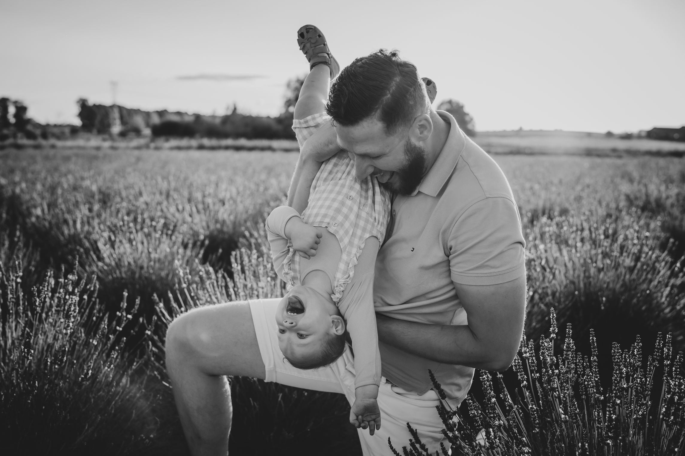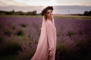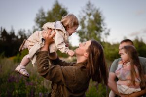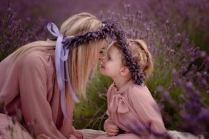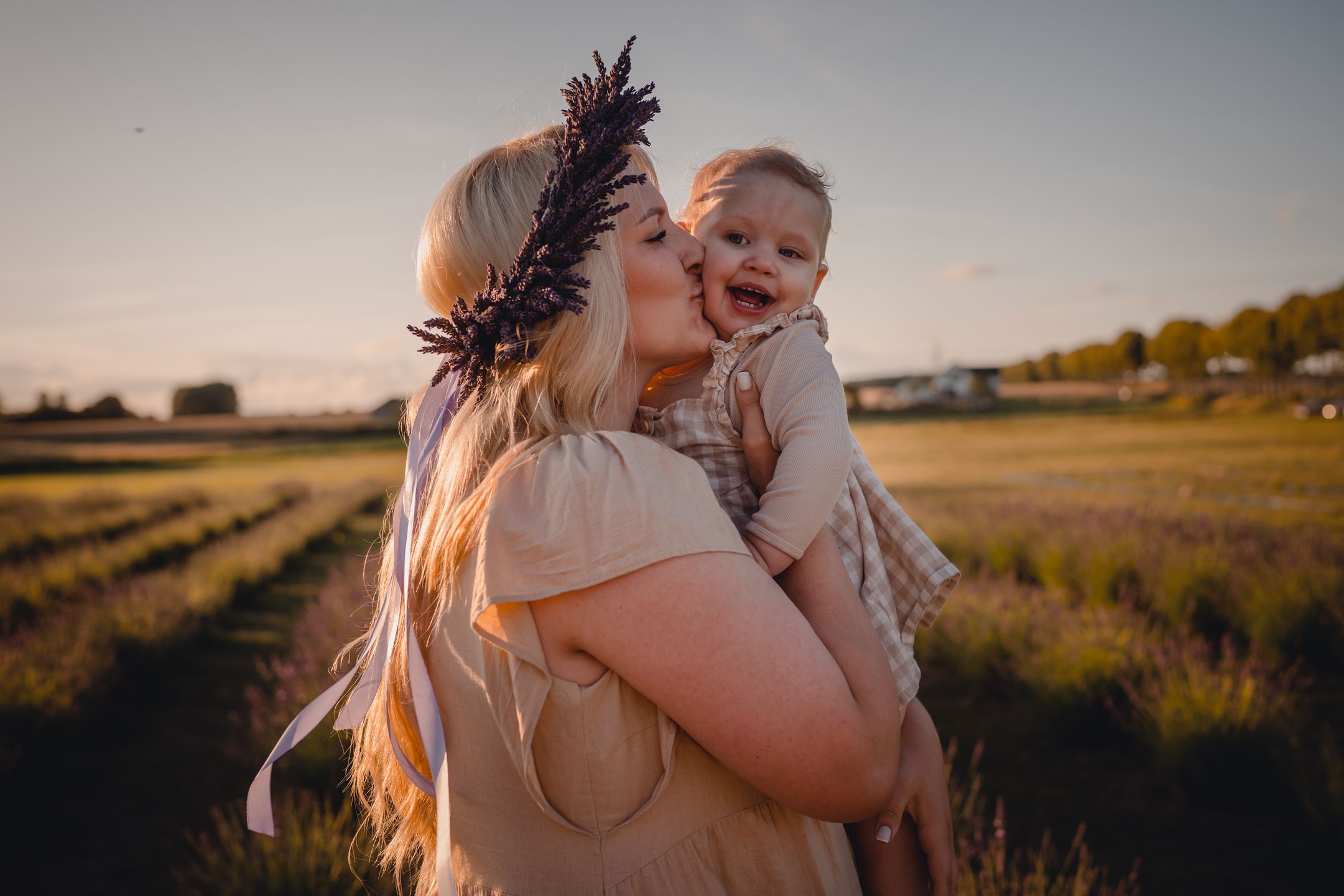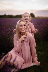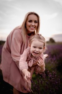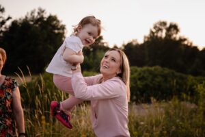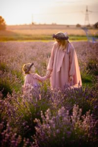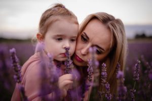Plenerowa sesja rodzinna w lawendzie o zachodzie słońca