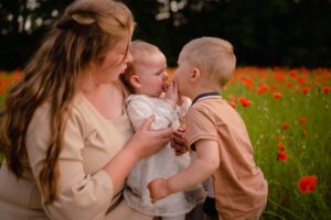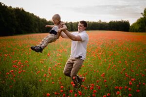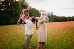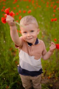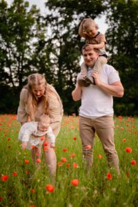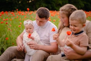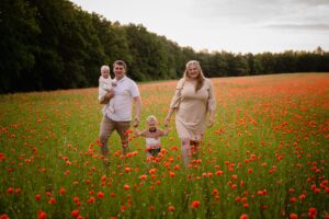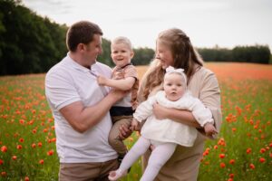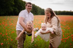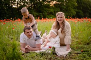 Plenerowa sesja rodzinna wśród kwitnących maków