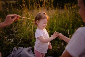Na moich sesjach to my się dostosowujemy do małych dzieci, a nie one do nas. Jeśli ma ochotę biegać, to my się aktywnie bawimy razem z nimi. Jeśli ma ochotę być blisko mamy lub taty, a w sumie nie chce się nawet odkleić od nich to robimy zdjęcia przytulane. Generalnie jak się wsłuchamy w potrzeby dziecka to wszystko pójdzie dobrze. Na sesjach zawsze proszę rodziców o bawienie się w ulubione zabawy dziecka, o zainteresowanie go tym co się dzieje w koło, o pośpiewanie ulubionych piosenek a ja w tym czasie robię zdjęcia i wyłapuję te naturalne uśmiechy !