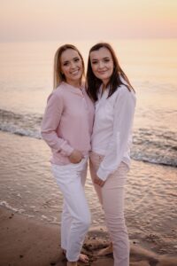 Wbrew pozorom to była zwykła plenerowa sesja rodzinna. Robiliśmy zdjęcia w parku, byliśmy na spacerze w ogrodzie przy Pałacu Bursztynowym. Na końcu pojechaliśmy zobaczyć jeziorko, którego wcześniej nie znałam. Całe szczęście wzięłam aparat w rękę. Dziewczyny postanowiły wskoczyć do wody, a dodatkowo trafiliśmy na piękny zachód słońca. I przypadkiem powstały takie zdjęcia!!!