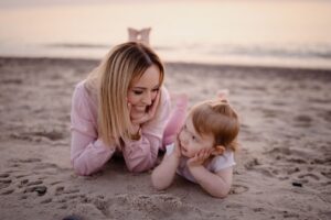 Sesja plenerowa mamy z córką nad jeziorem Wyszebórz