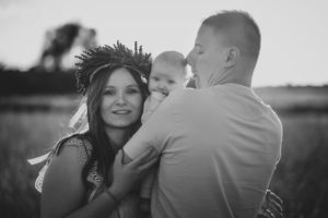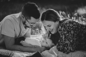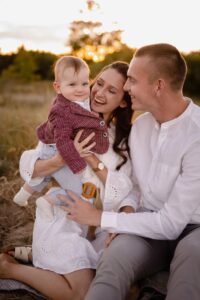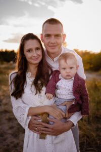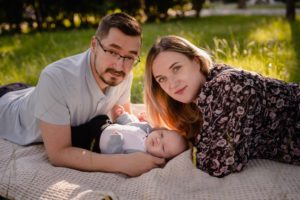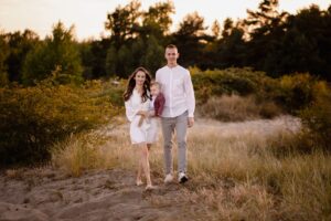 Noworodkowa sesja rodzinna plenerowa o zachodzie słońca- Koszalin