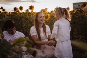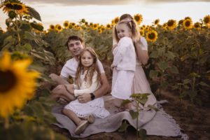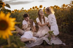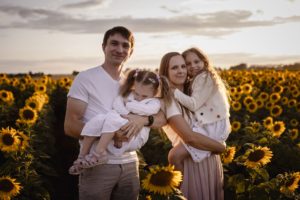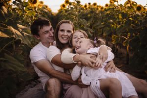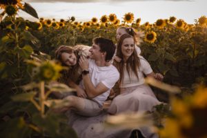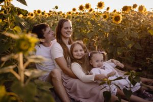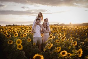 Plenerowa sesja rodzinna wśród słoneczników przy Dworku Golikowo